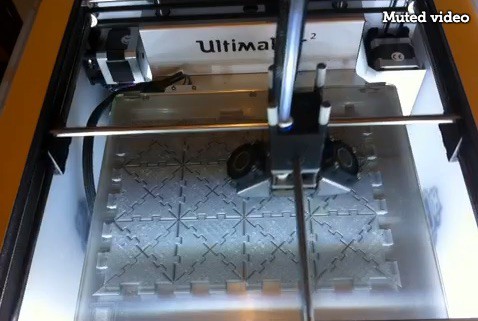 Each side of the bag is printed in one piece. The hinges on each surface are printed in place, so the “fabric” moves and bends right out of the printer.