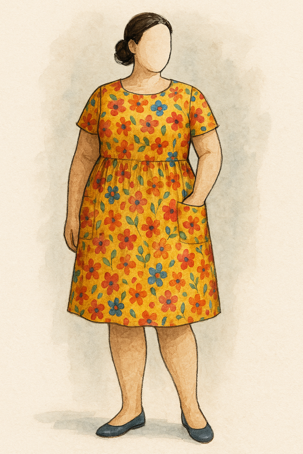 Persona 2 (Teacher): My ideal dress would definitely be something colorful with a pattern that expresses some fun vibes. It’s important for it to be comfortable since I spend most of my day moving around with the kids. I picture it being a knee-length dress with pockets—pockets are a must! The fabric should be breathable too, because Austin can get really warm and I don't want to feel overheated. Overall, it should be cute but practical for my busy teacher schedule.