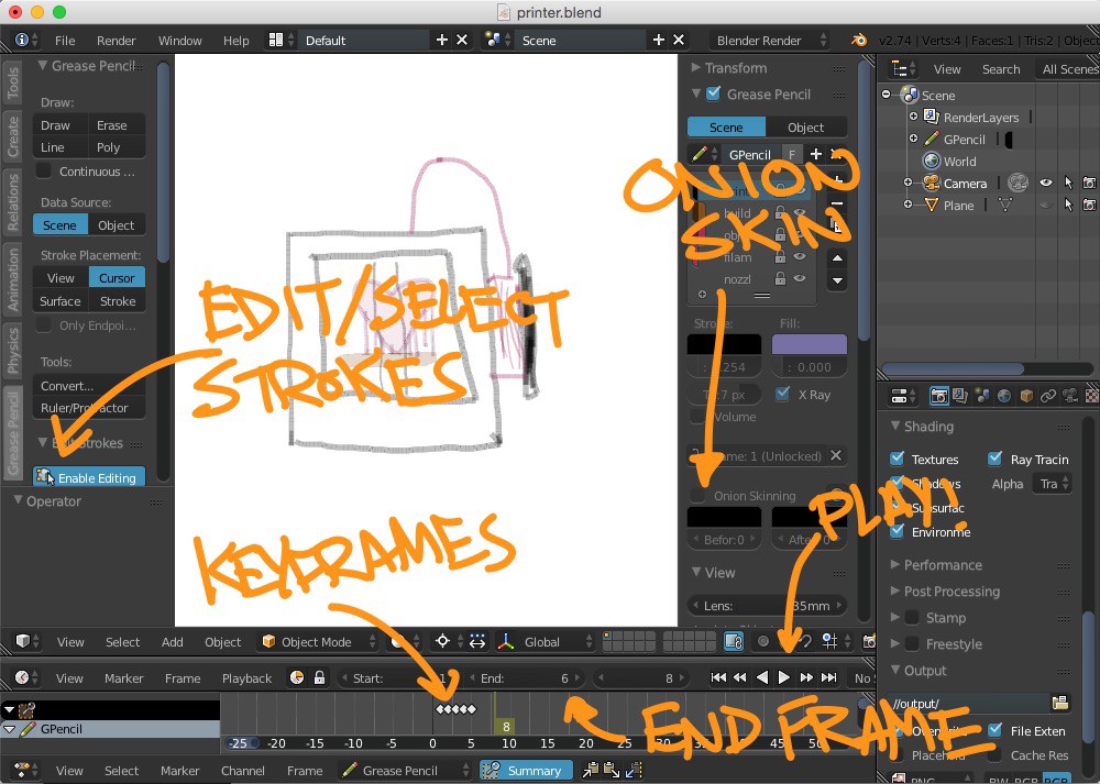 As a bonus, the new Grease Pencil’s stroke width responds to pressure sensitive drawing tools, like my old Wacom Bamboo tablet.