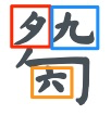 Take the example above. In Chinese, the various components comprising this character is 六名勾(九). 名 and 勾 are simplified into the component in the red box and component outside of the orange box, respectively.