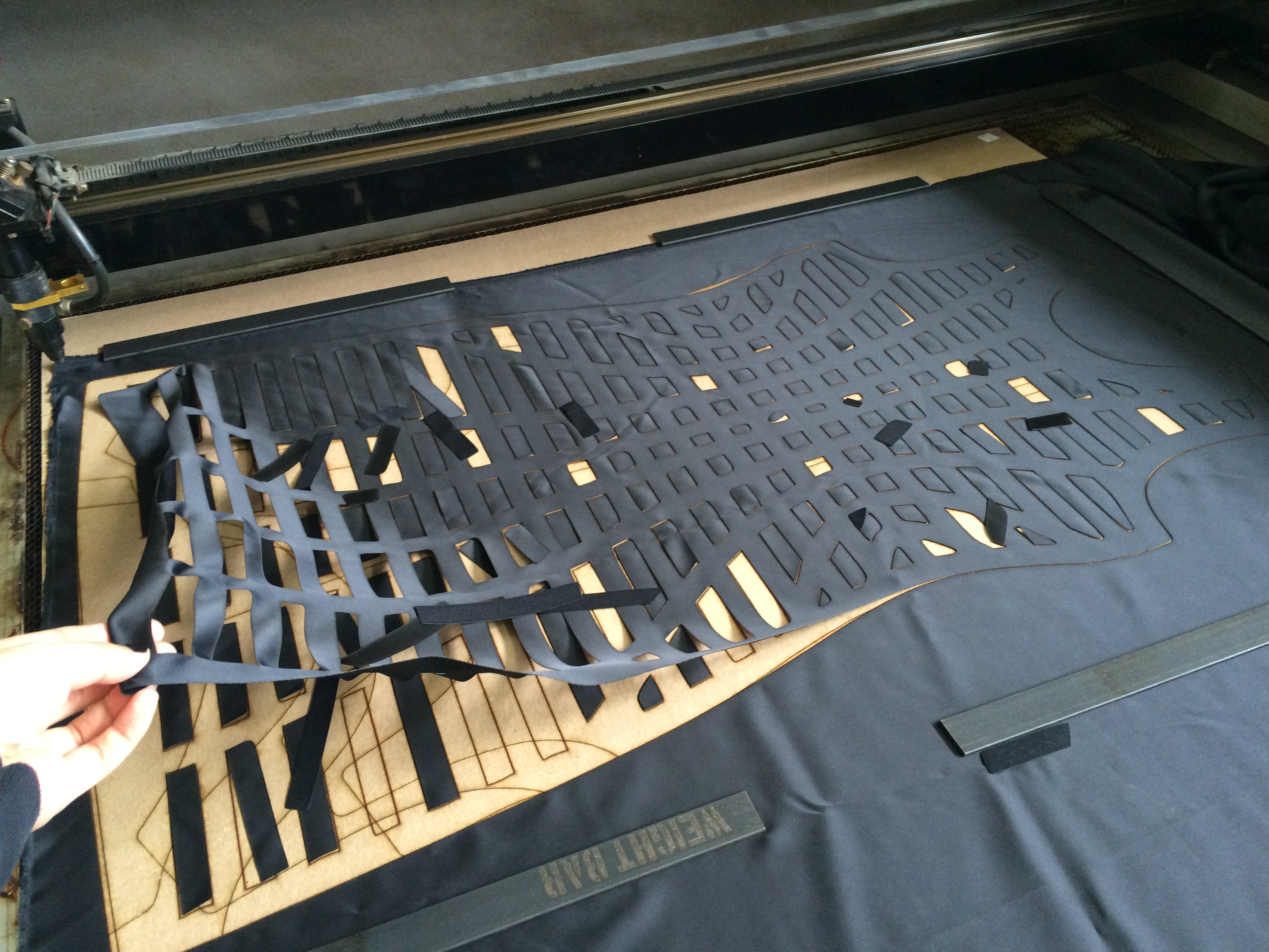I went to SoDo Makerspace with my fabric to laser cut the garment. Pew! Pew!